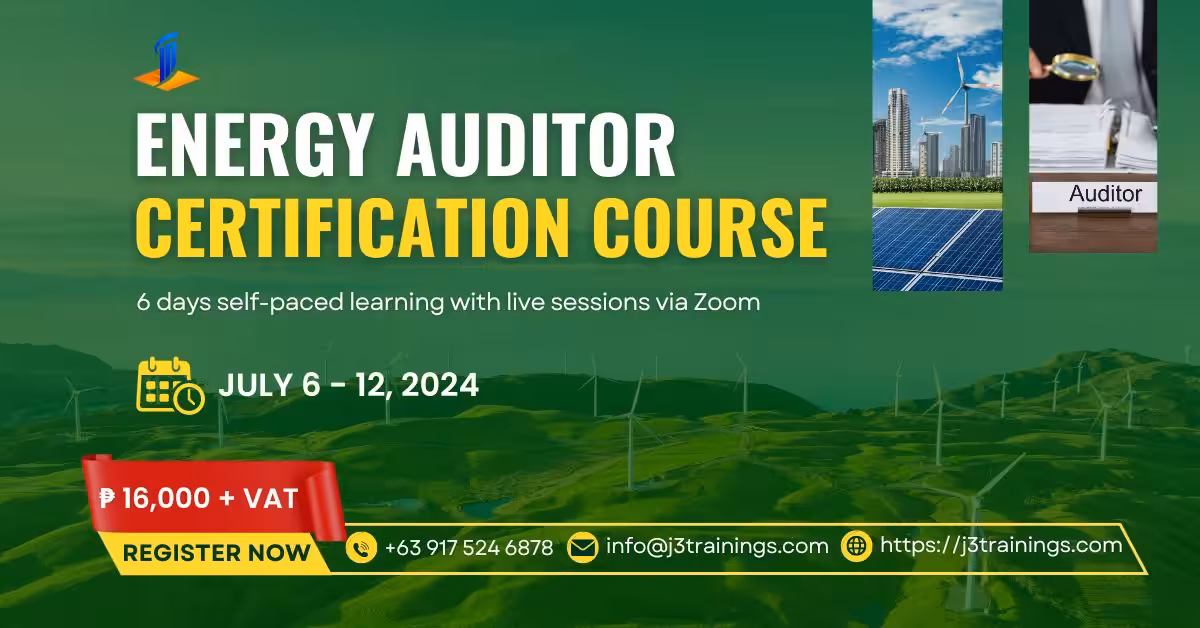 The 52-hour course is designed to provide the learner with knowledge, practical skills and attitude required to carry out an energy audit that involves gathering of data, evaluating and analyzing energy usage in a facility and recommending opportunities to reduce energy consumption through conservation and optimization. Course certificate is a requirement to apply for a Certified Energy Auditor qualification with the Department of Energy (DOE).