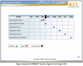 Milestone charts are similar to bar charts, but they only show the scheduled start or completion of major deliverables and key external interfaces. A milestone is an activity with zero duration. A milestone should be associated with significant deliverables or events in a project. Milestones are generally associated with significant events, such as