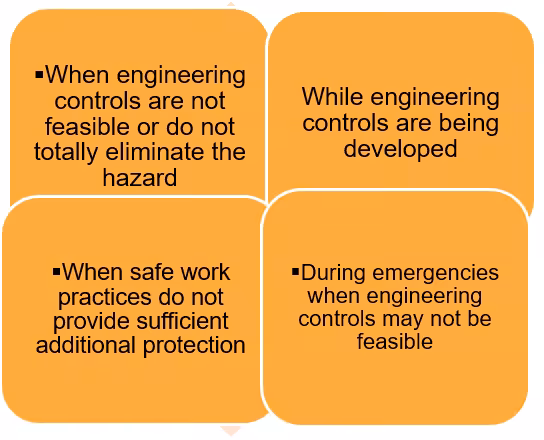 Examples of PPE include respirators, hearing protection, protective clothing, safety glasses, and hardhats.